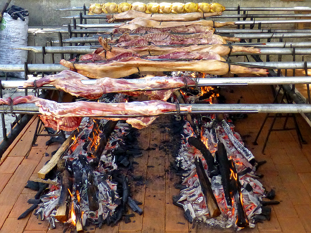 1:15 PM – skewers hoisted onto the makeshift barbecue