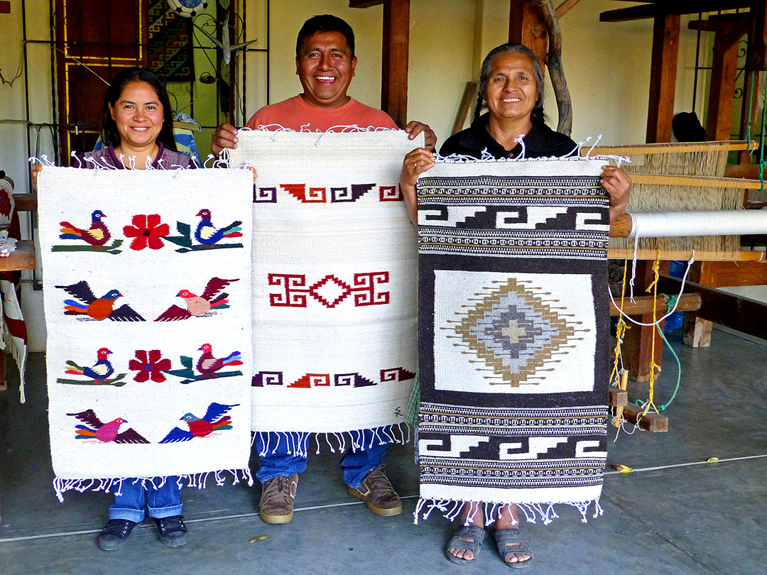 My (grown) children received their gifts on December 25, not January 6, and last year each received a tapete woven by the talented Sergio Ruiz Gonzalez — brother of Antonio, who wove my new rug. In the photo, that’s Sergio, his beautiful wife Virginia, and his lovely mother Emilia (of Lila Downs’ El Palomo del Comalito video fame).