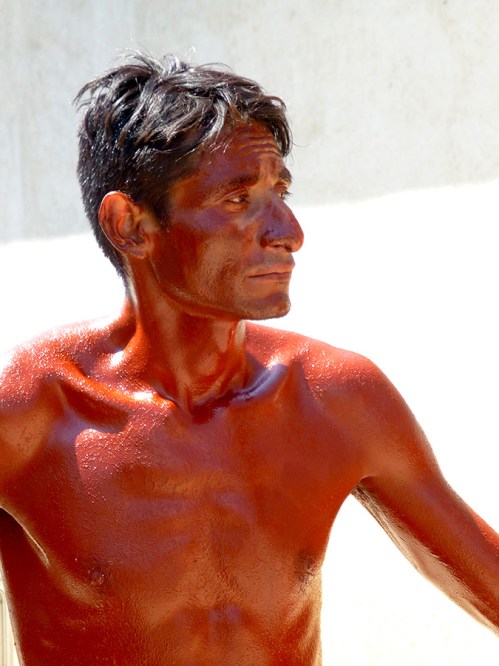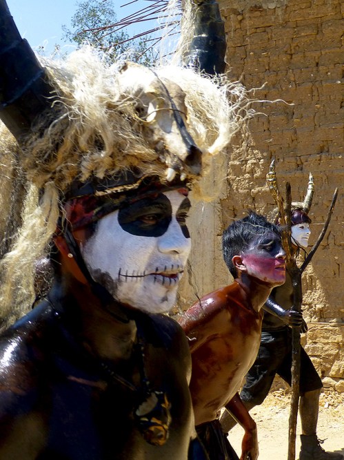 Besides a mock wedding with men dressed as women, mentioned in my previous post, Carnaval (Carnival, Mardi Gras, Fat Tuesday, Shrove Tuesday) in San Martín Tilcajete also means young men covered in motor oil (yuck!) and paint running through the village with belts of cowbells ringing.