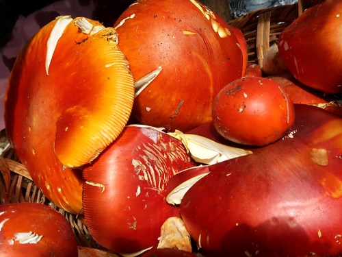 Baskets of fresh mushrooms with shiny orange caps and mushrooms resembling coral, trumpets, cauliflower, and flower petals beckoned. And the aroma of grilled mushrooms, mushroom tamales, mushroom empanadas, and chile relleno stuffed with mushrooms stimulated the appetite.