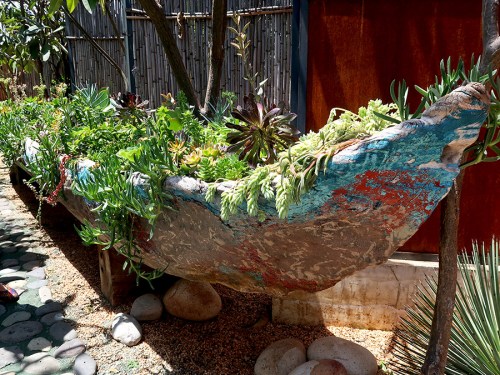 Nine years ago architect, Francisco Martínez began a project of landscaping a healing, artistic, and environmental garden — not only utilizing plants, but also converting found objects into planters and whimsical art.