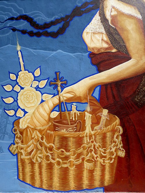 The artistry and message of my favorite mural painting collective, the Tlacolulokos, continues to be revealed on the walls of Tlacolula de Matamoros. Today, on a brief visit, blogger buddy Chris and I stumbled on three of their masterpieces. The first one I’d previously seen and blogged about in 2017 under the title, Who tells your story. However, the second mural was new to both of us.