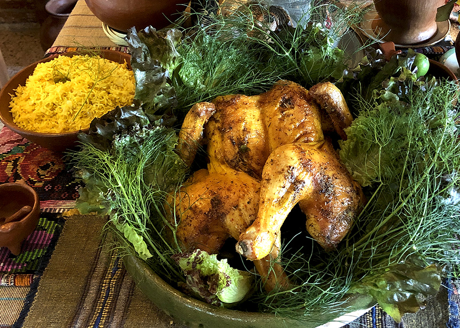 Roast chicken with saffron rice