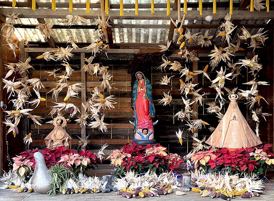 December 26, 2023 – Juquila, Guadalupe, and Soledad on altar at the workshop of Jacobo and María Ángeles in San Martín Tilcajete.
