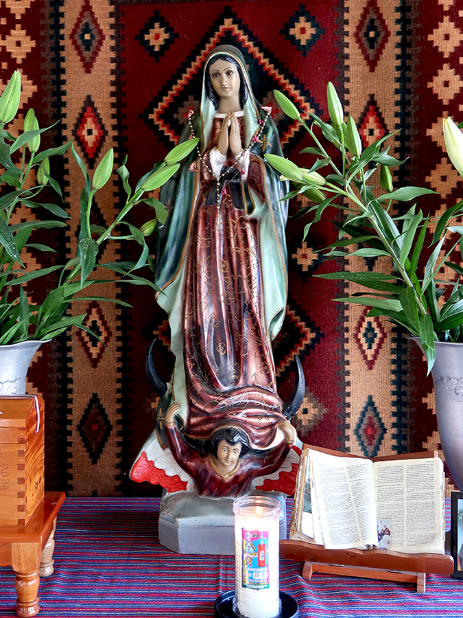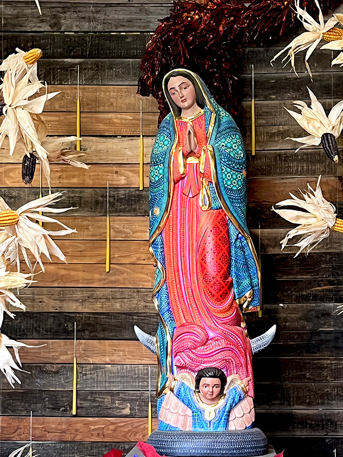 January 19, 2024 – Guadalupe on an altar set up in a private home prior to a wedding in Teotitlán del Valle.
