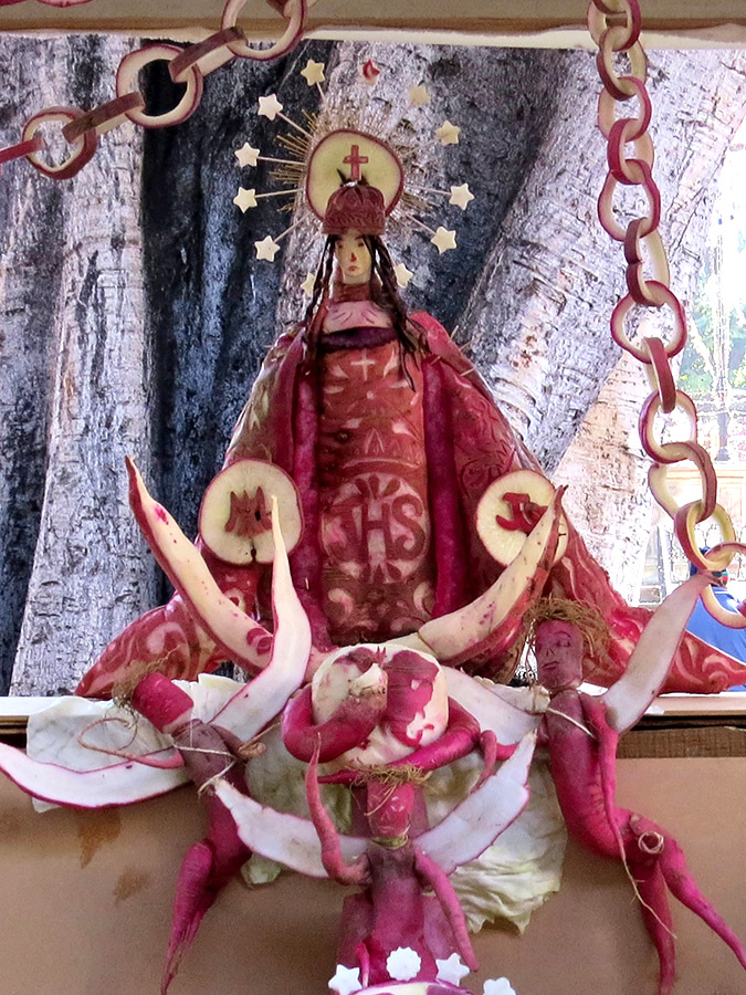 And, the wild and whacky rabanos (radishes), totomoxtle (corn husk), and flor inmortal (dried flower) creations on December 23, Noche de Rábanos (Night of the Radishes).