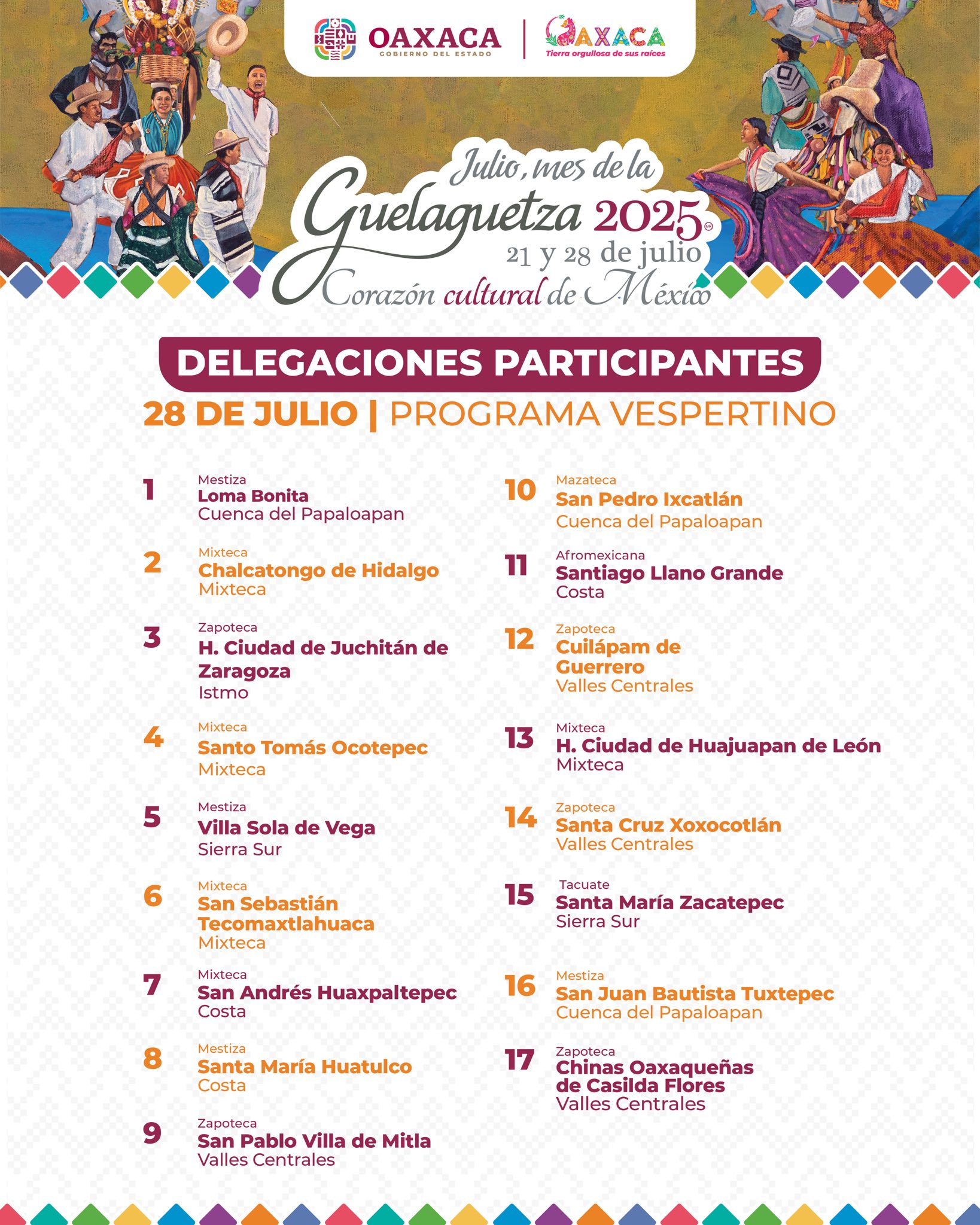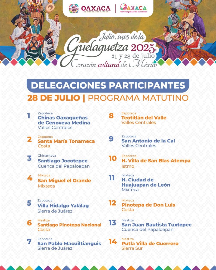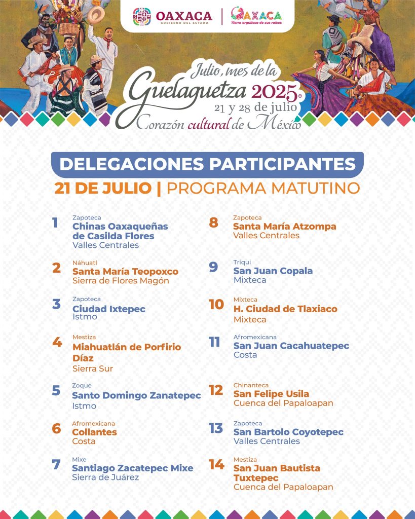 Whether you are currently in Oaxaca or, like me, thousands of miles away, you can watch La Guelaguetza 2025. The 10:00 AM and 5:00 PM performances on July 21 and July 28, 2025 are being live streamed on the Guelaguetza Oficial Facebook page, CORTV, and Guelaguetza 2025 YouTube channel. (Note: Most of Mexico, including Oaxaca, does NOT observe daylight savings time.)
