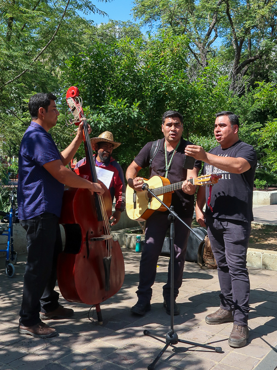 After eight months up in el norte, I arrived back in my sweet Oaxaca home Wednesday night. Travel seems to get more exhausting by the year and thus I spent Thursday and Friday unpacking in slow motion and limiting my grocery shopping to within four blocks of my apartment and just for the necessities — salsa verde and tortillas hot off the comal from the gal next door, quesillo and chipotle salsa from the cheese shop, avocados, and lettuce. I recovered just in time to walk over to Parque El Llano this morning for Oaxaca’s own No Kings protest. The sun was shining and the sky was clear blue as young and old gathered to join the world in a global day of resistance.