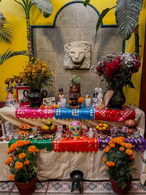 An ofrenda is an offering and I’m hoping my very dearly departed, after their long journey to southern Mexico, will find it warm, welcoming, and nourishing.
