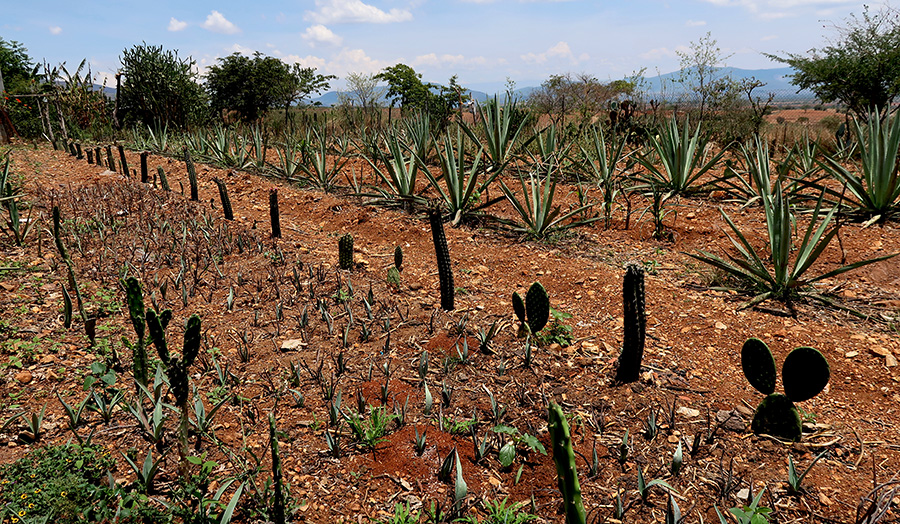 A water catchment system utilizing paths, beds, and ponds irrigate this garden of more than 200 species and 2000 plants — mostly from Oaxaca.