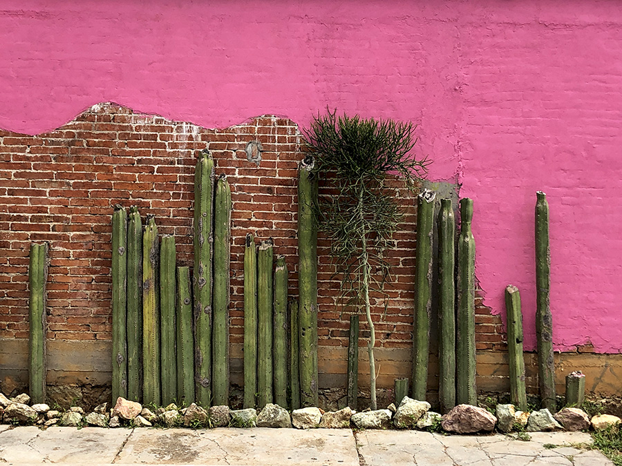 Greetings from cold, gray, windy, and rainy Northern California. I arrived a couple of weeks ago and am still in recovery from a three-day wedding in Teotitlán del Valle right before I departed for winter in the San Francisco Bay Area. Family, friends, frozen fingers, and a severe case of sticker shock have also contributed to no new blog posts for sixteen days. And, please consider this advance warning: I’m going to be in el norte for several months. However, I have many ideas and photos for future Oaxaca focused blog posts — they just may be few and far between. I begin with remembering last February’s return visit to Vives Verde, the labor of love garden created by architect Francisco Martínez.