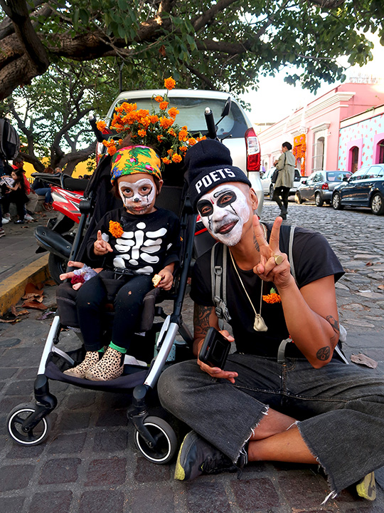 It’s Halloween time up here in el norte and the occasional house features spiders poised to pounce in webs strung across bushes, witches with broomsticks guard front gates, and pumpkins decorate entries signaling trick or treaters are welcome. A few skeletons have moved into the neighborhood but none are as well dressed and accessorized as those seen last year loitering on sidewalks, hanging out on walls, and dining in the restaurants of Oaxaca during Día de Muertos (Day of the Dead).
