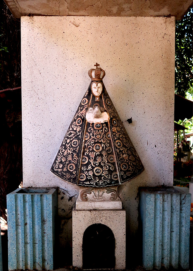 Image of La Virgen de la Soledad at a grave site in Tlacolula de Matamoros, Oaxaca.