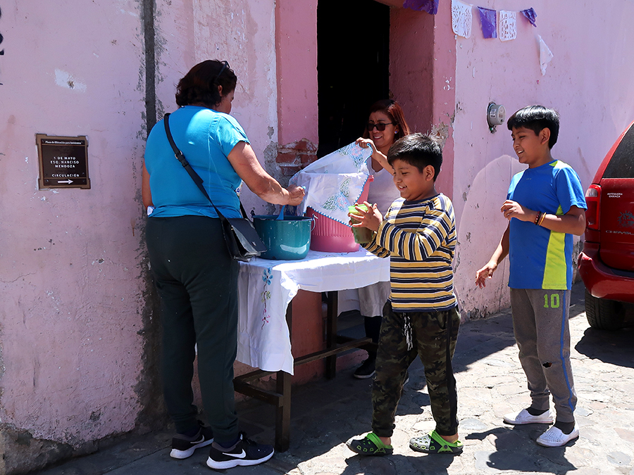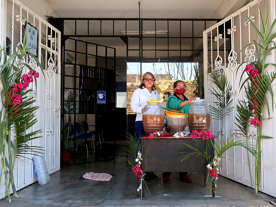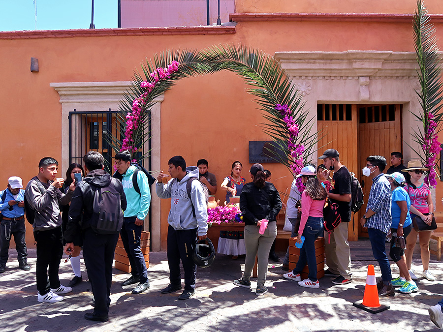 Celebrating the Good Samaritan in Oaxaca began in the atria of churches at the end of the 19th century and is a popular and much-loved tradition. People of all ages, from small children to grandparents, line up at bougainvillea and palm decorated booths in front of churches, restaurants, businesses, and schools for the traditional Día de la Samaritana free flavored waters.