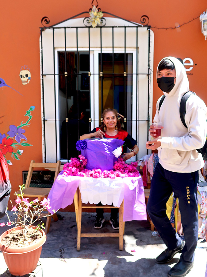 By noon, masses of people had gathered in the atrium of the local church, Templo de San Matías Jalatlaco, where two long rows of tables, under the shade of the tented atrium, were lined with massive bowls filled with colorful aguas on offer. However, I preferred to avoid the crowds and wander through the streets of my Jalatlaco neighborhood.