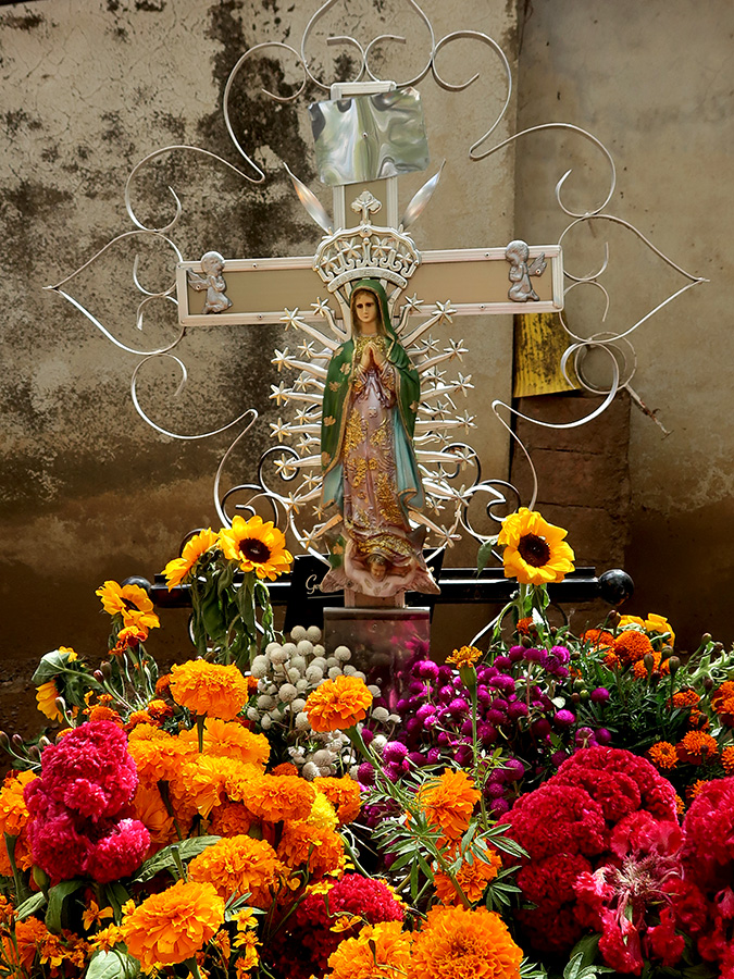 November 4, 2023 – Guadalupe watching over a grave in the cemetery of San Antonino Castillo Velasco.