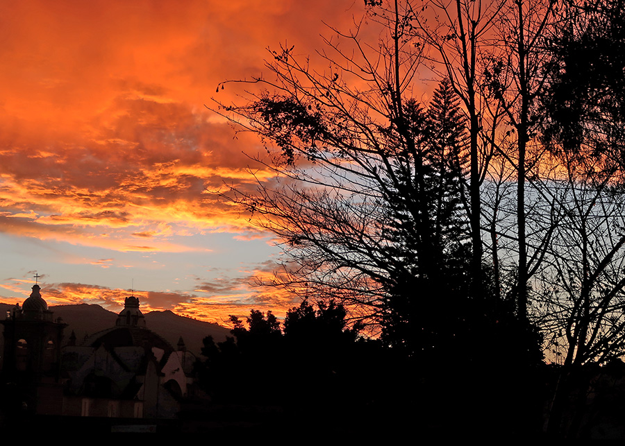 January sunsets in Oaxaca are spectacular. Looking west, behind Templo de San José, Basílica de la Soledad, and the mountain Monte Albán sits atop, they often have me dropping whatever I’m doing, dashing out the door and onto the terrace to gaze — before the magic disappears into darkness.