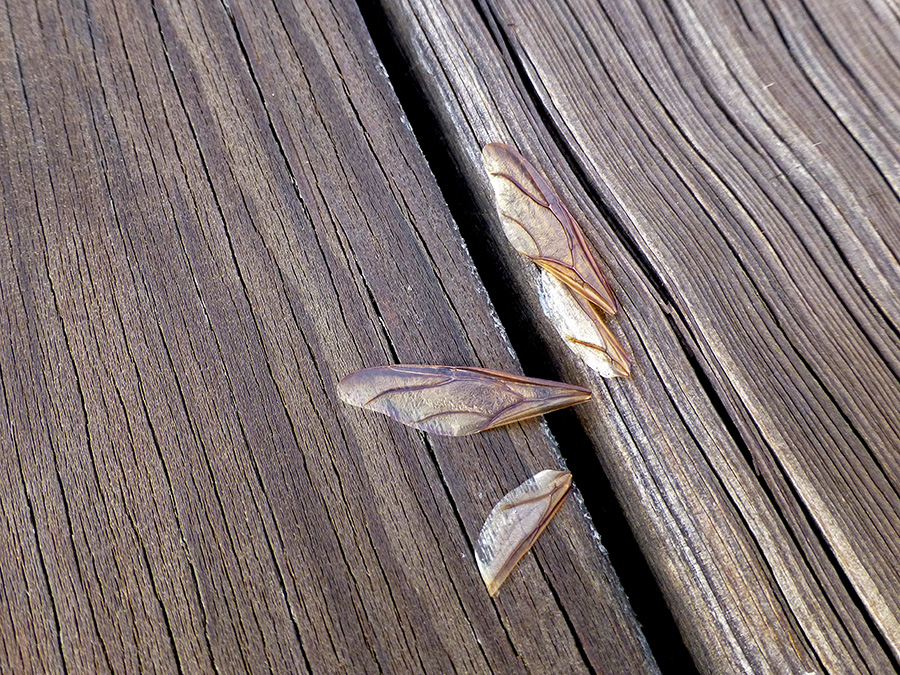 By this morning, the rain had stopped and when I returned from an early errand, I found chicatanas — queens (wings) and soldiers (wingless with vicious front pincers) — crawling around on my terrace and balcony.  There were probably many more earlier, but I had been in a hurry and hadn’t noticed.  By 10:30 AM they were gone.