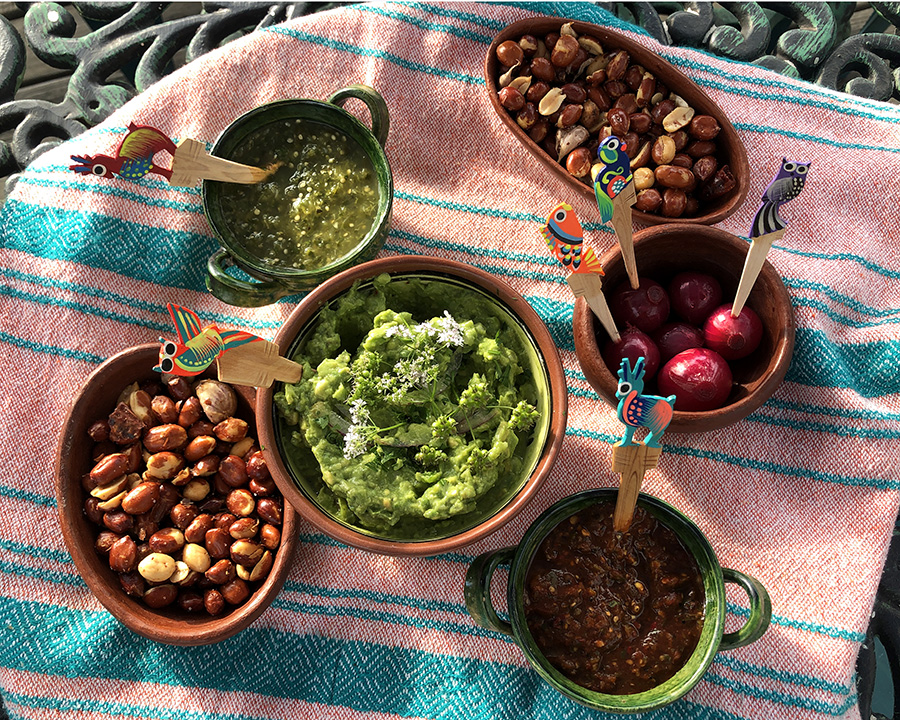 October 8, 2020 – Guacamole, pickled onions, salsas, and peanuts.