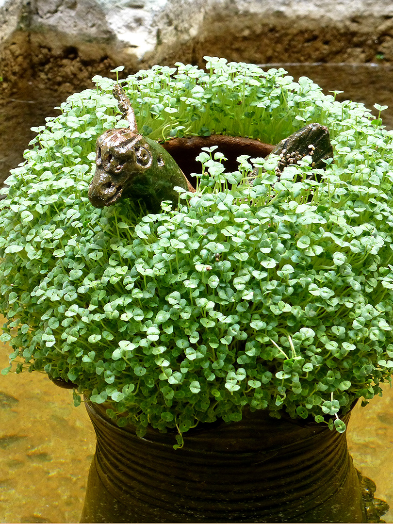 Salvia Hispanica (aka, chia) sprouting from terracotta clay animals decorate altars — seeds which had been blessed on February 2, Día de la Candelaria (Candlemas). According to an article in MexConnect, “Growing greens remind the viewer of the resurrection and renewal of life.” Yes, these are the original Chia Pets!
