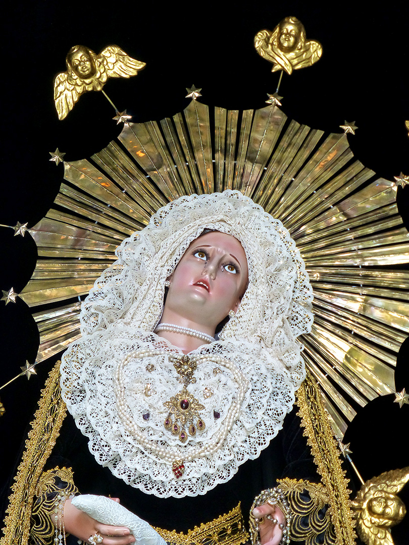 Today, the sixth Friday of Lent, Oaxaca honors la Virgen de Dolores (Our Lady of Sorrows). Altars dedicated to her can be found in churches, businesses, and homes. While the altars vary in their presentation, there are several key features (besides an image of the Virgin and candles) that will be found.