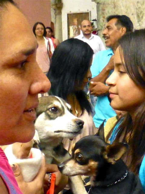 The procession successfully navigated overhead wires above and heeded warnings of “topes” (speed bumps) below. A kilometer down this perilous route, San Salvador and the faithful, young and old, approached the atrium of the church, San Salvador was set on the stage where an outdoor mass was to be said, and on the opposite side, the hand-and-head-carried offerings were to be sold. I cannot begin to express how warm and welcoming the people of San Antonino Castillo Velasco were. Wearing a blusa from San Antonino, that I purchased several years ago, I was smiled upon and, as I was taking photos, officials and other villagers ushered me to the front. Again, I ask, how many magical moments can one person have?