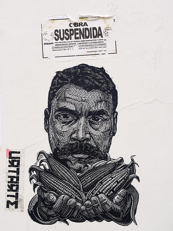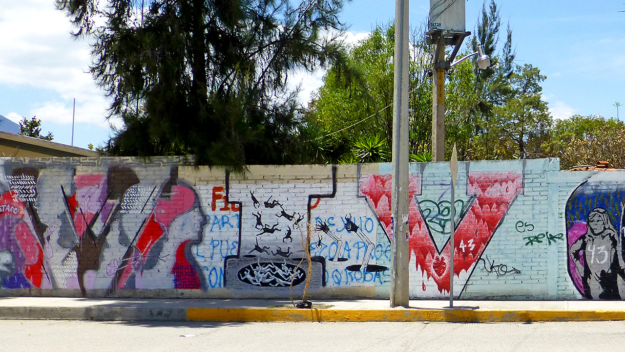 As news of that unspeakable night ten years ago spread, demonstrations were organized throughout Mexico — and soon the world — calling for justice and the return of the missing 43 student teachers (normalistas). Artists, as they have done throughout history, used their talent to give visual voice to the grief, outrage, and resolve to uncover the truth. And, I began documenting what I saw on the streets of Oaxaca.