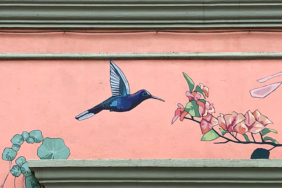 Life has been pretty good up here in el norte. The joy of having my whole family together has been immeasurable and the weather has been unusually, for this time of year in the San Francisco Bay Area, spectacular. (For those unaware of Northern California coastal weather, I give you the line attributed, albeit falsely, to Mark Twain, “The coldest winter I ever spent was a summer in San Francisco.”) Given the sun, blue sky, and warm temperatures, I’ve spent a lot of time outdoors — gardening, eating, and sitting watching the hummingbirds — just like Oaxaca! But I miss the colibries that also can be found on the walls of my neighborhood.