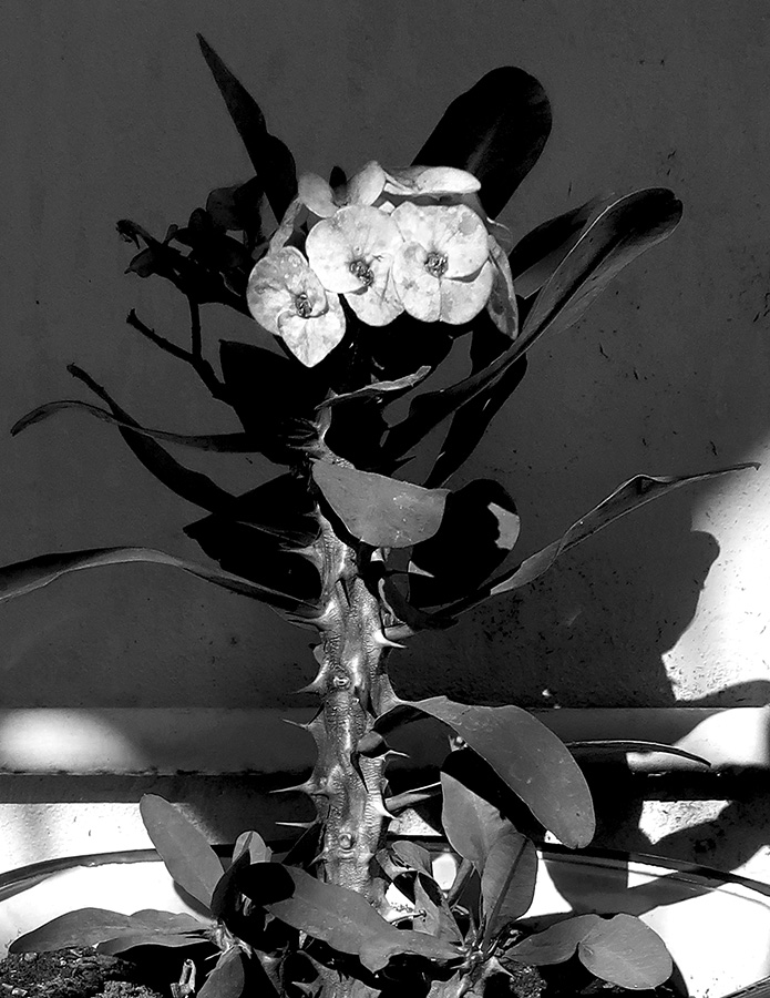 Posted in Casita Colibrí, Flora, Gardens, tagged Black and white photography, Casita Colibrí, container plant, Crown of Thorns, Euphorbia milii, Mexico, Oaxaca, photos, succulents on May 24, 2019| Leave a Comment »