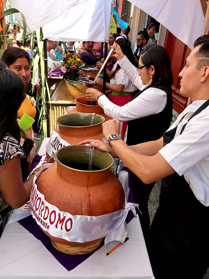 Celebrating the Good Samaritan in Oaxaca began in the atriums of churches at the end of the 19th century and is a popular and much-loved tradition. Thus I joined thousands of Oaxaqueños and visitors, clutching cups, and wandering from one decorated agua station to another sampling their offerings.