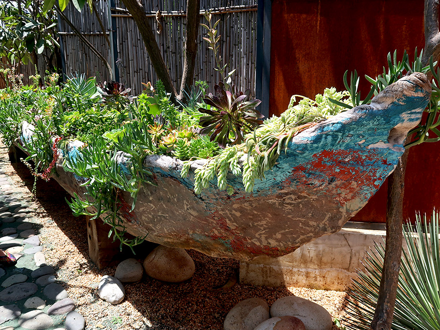 Over fourteen years ago, architect Francisco Martínez began a project of landscaping a former garbage dump into a healing, artistic, and environmental garden — a marriage of plants, recycling, whimsical art, and education.