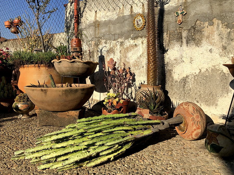 Greetings from cold, gray, windy, and rainy Northern California. I arrived a couple of weeks ago and am still in recovery from a three-day wedding in Teotitlán del Valle right before I departed for winter in the San Francisco Bay Area. Family, friends, frozen fingers, and a severe case of sticker shock have also contributed to no new blog posts for sixteen days. And, please consider this advance warning: I’m going to be in el norte for several months. However, I have many ideas and photos for future Oaxaca focused blog posts — they just may be few and far between. I begin with remembering last February’s return visit to Vives Verde, the labor of love garden created by architect Francisco Martínez.