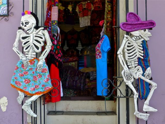 Day of the Dead altars and their offerings to the departed vary from region to region and, within those regions, from family to family. Ofrendas (offerings) are an integral part of Día de Muertos. They are a beacon to the departed, an ephemeral work of art, and the sum of their lovingly chosen parts. As you can see from the photos below from several in Barrio de Jalatlaco, even on public display, they are intensely personal and creative.