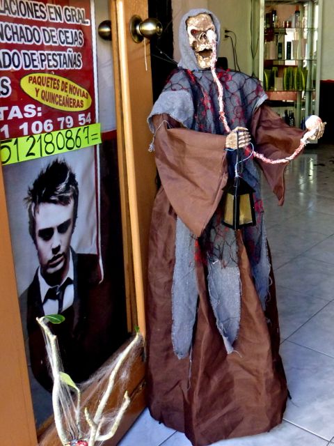 And, lest the departed can’t find their way home in the greatly expanded city, an old photo and skeletons await outside the altar alcove to show the way.