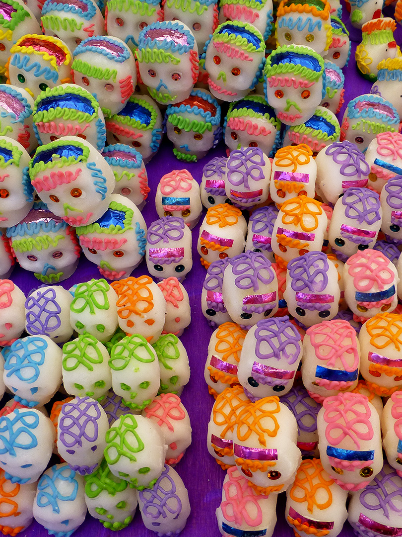 And, there is a catrina tapete de arena (sand carpet) made of sand, beans, and flowers.