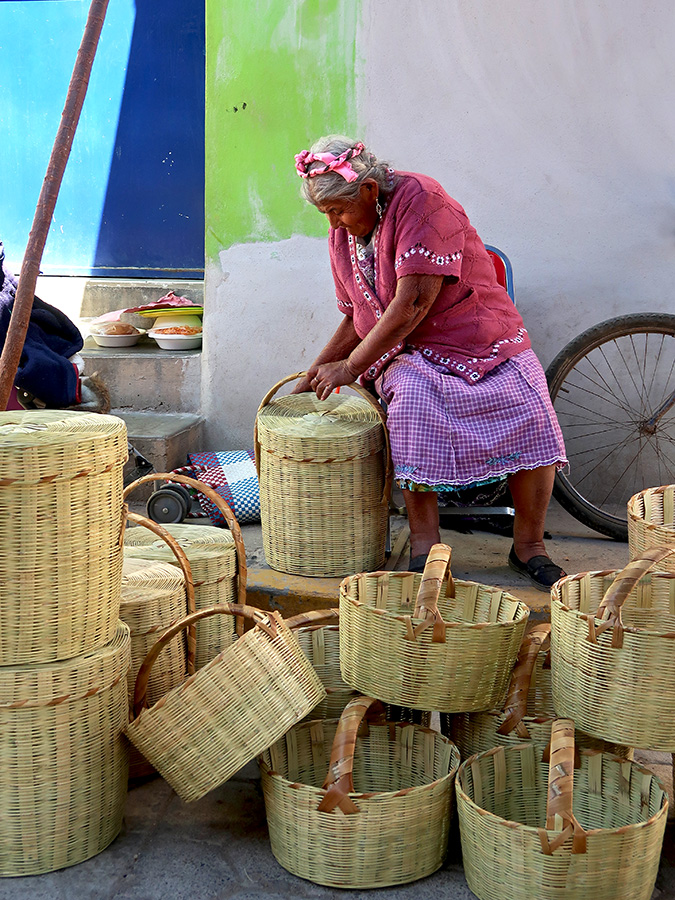 If it’s the end of January into the beginning of February, it must be time for the Feria del Carrizo in San Juan Guelavía. About twenty minutes east of the city, this village was known for their beautiful and functional baskets hand-woven from carrizo (Arundo donax, Spanish cane, Giant cane, Wild Cane, and Colorado River weed), a tall perennial cane that grows along river banks.