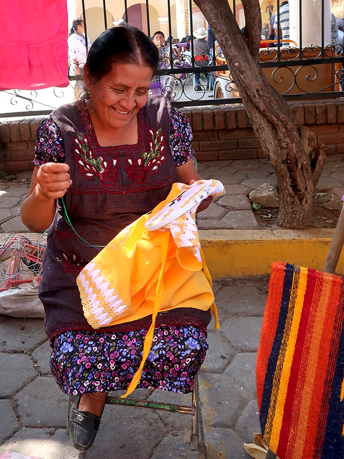 These baskets have traditionally been used as carriers and storage bins since before the Spanish set foot on the soil that became Mexico. However, their popularity and demand took a nosedive, along with the economy of San Juan Guelavía, upon the arrival of plastic baskets. The answer, in 2012, was to promote these artisans, their wares, and their creativity with a fair. Several days preceding Sunday’s inauguration of the 6th annual fair and sale, there were misas (masses), parades, and fireworks.
