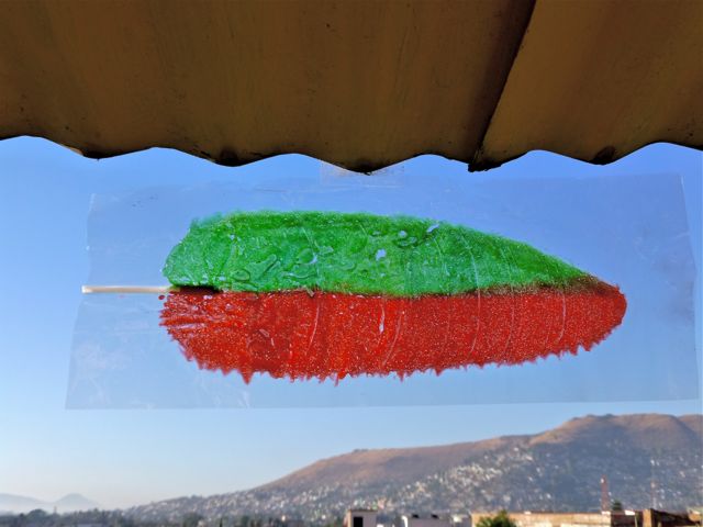 Last week, my neighbor Marga gave me a cachetada. No, not a slap on the cheek! A cachetada is also a Mexican candy — similar to the dried fruit roll ups my kids used to eat, though I have a sneaking suspicion these may just be dried, dyed, and flavored sugar water. Here is mine, hanging out in Oaxaca.