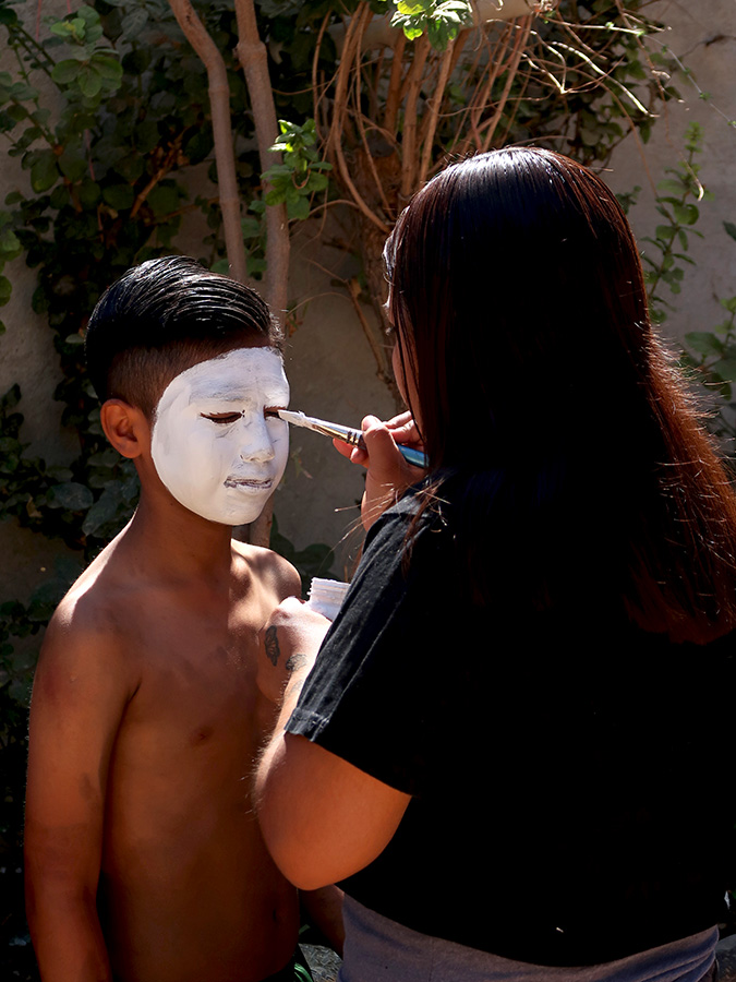 Not only were there masks at the workshop, there were bodies to be painted and it was a family affair — brothers, sisters, cousins, children, wives, and Victor himself who painted, was painted, and donned a mask.