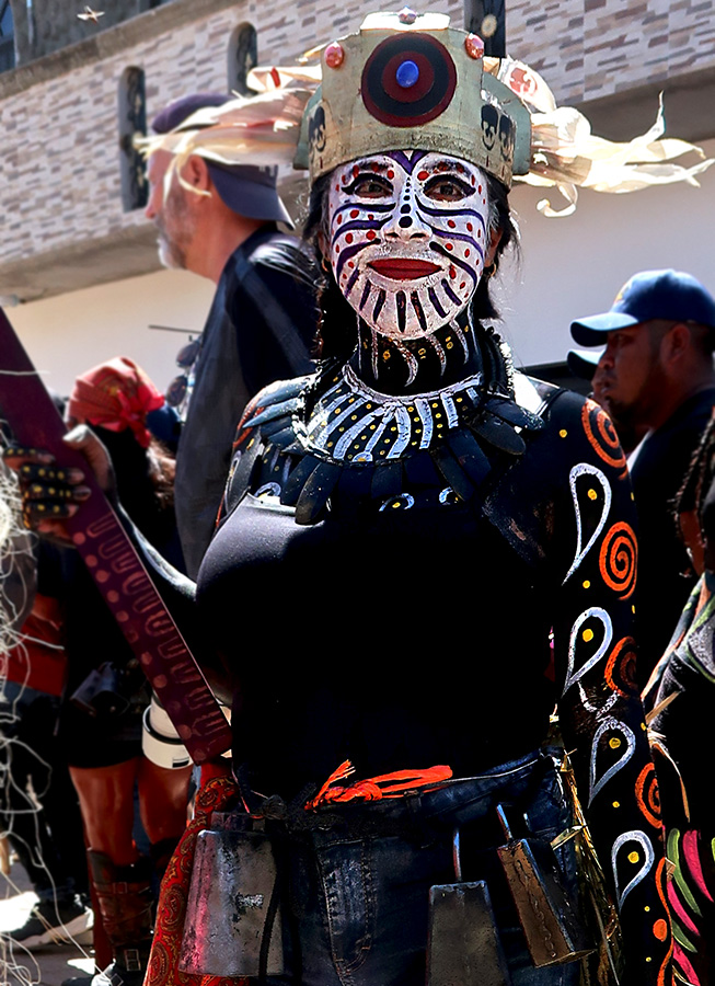Día de Carnaval (aka, Shrove Tuesday, Fat Tuesday, Mardi Gras, Carnival, day before the beginning of Lent) is coming in two days and, in order to promote the varying celebrations in the state of Oaxaca, the Secretaría de Fomento Turístico (Secretariat of the Promotion of Tourism) invited delegations from various villages in the state to showcase their unique traditions in a grand parade down the city’s walking street, Macedonio Alcalá. The costumes and body paint were outstanding, but it was the masks and faces that spoke to me.