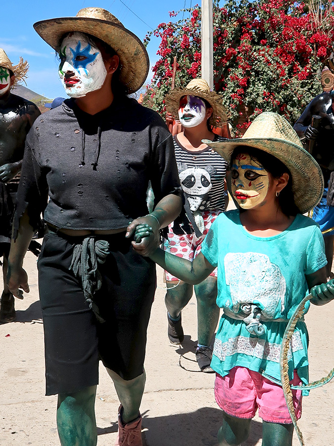 And, there is body paint — a mixture of vegetable oil (with the possible addition of motor oil) and the same powdered paint used on the intricately decorated masks and alebrije the village is famous for.