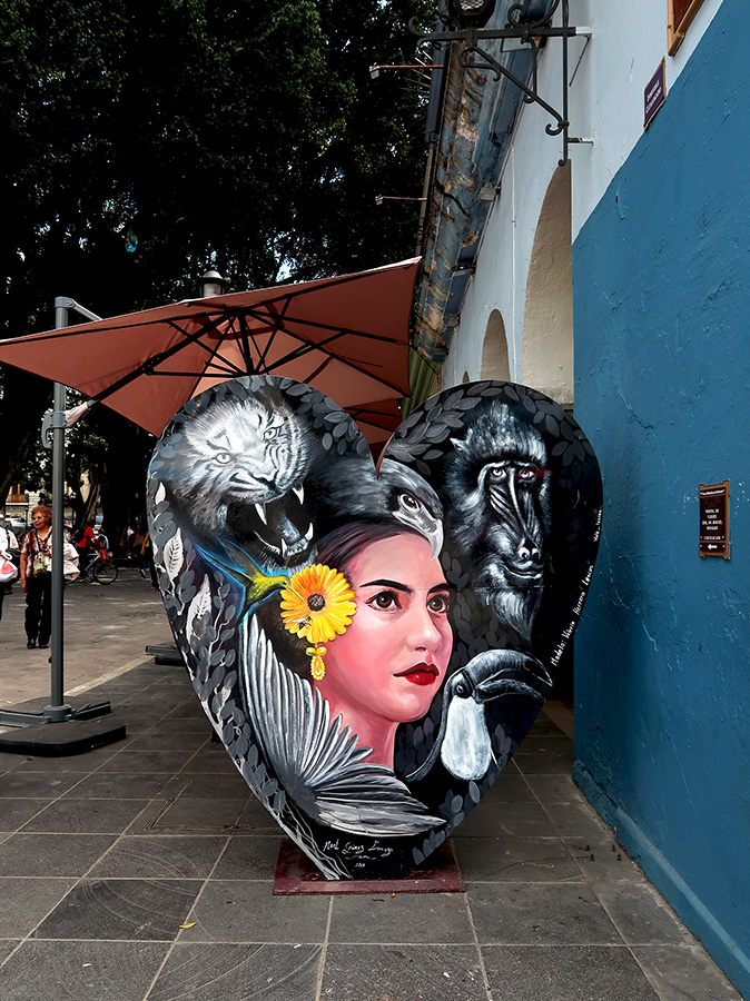 My favorite, by the painter, Noel Gómez Lorenzo, is in a very prominent spot on the zócalo. May the hearts of Oaxaca be filled each and every day!