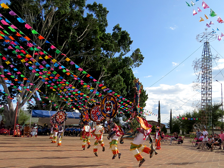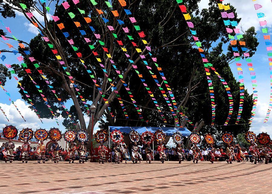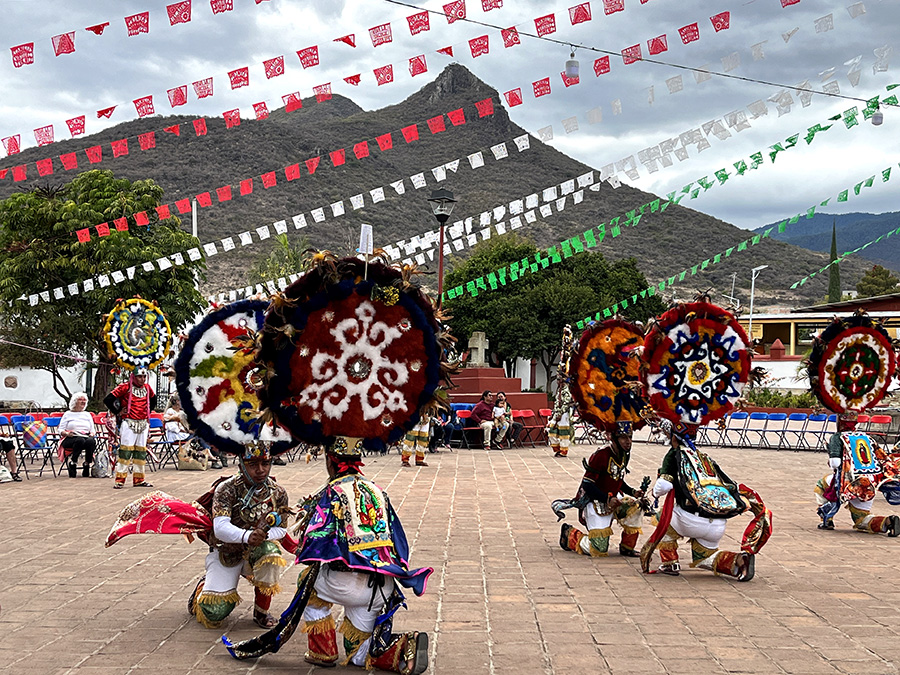 El Picacho, the sacred mountain, watches over the village and the dancers.