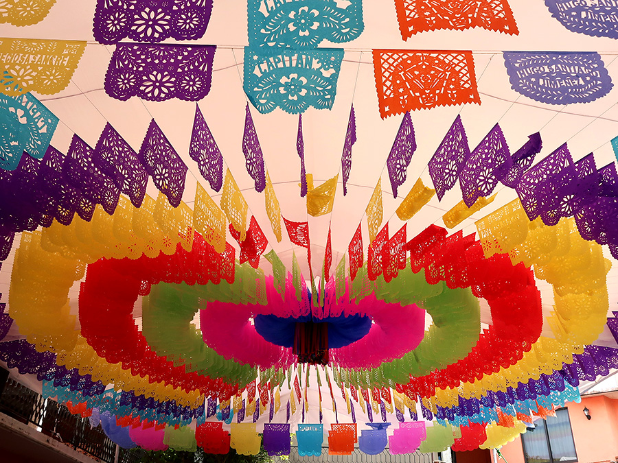 Papel picado at the fiesta hosted by the family of Capitán 2, Hugo Santiago Jimenez, at Casa Santiago.