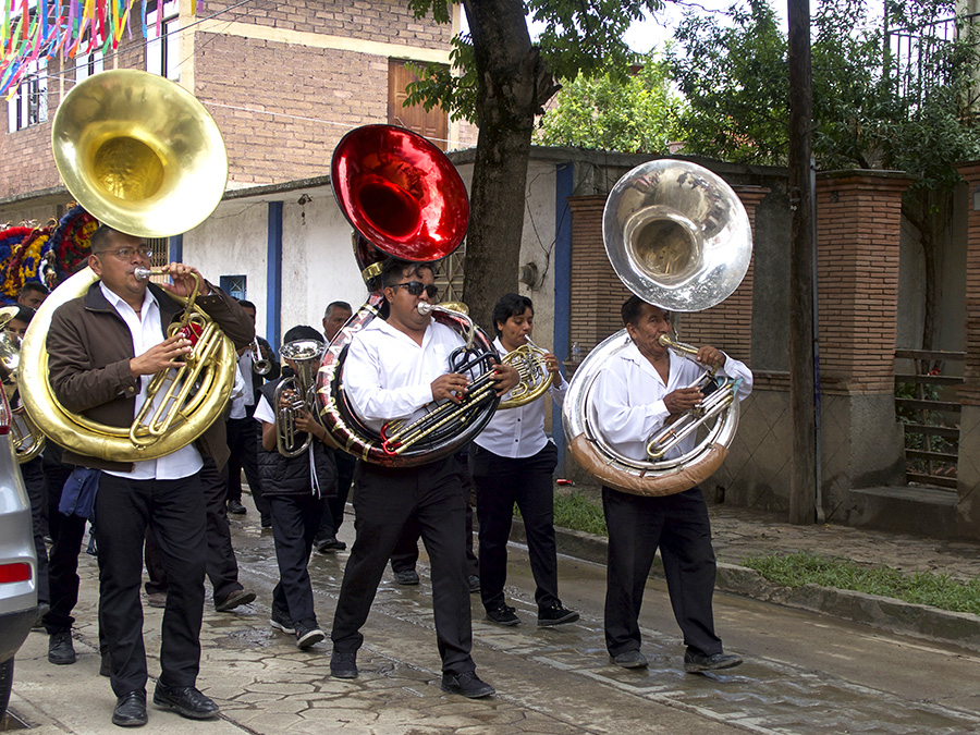 Band leads the way back to the Templo de la Preciosa Sangre de Cristo.