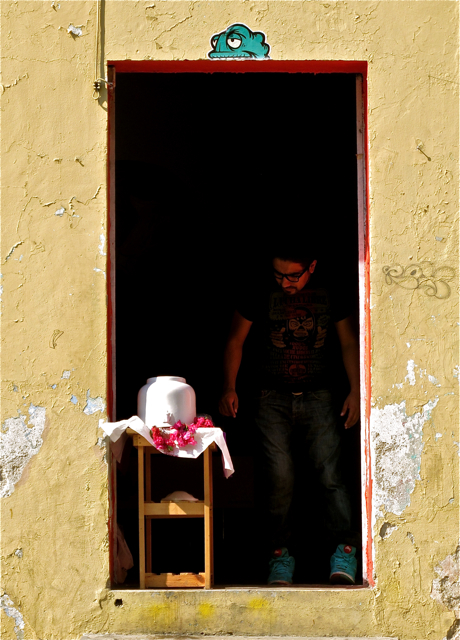 By noon, masses of people had gathered in the atrium of the local church, Templo de San Matías Jalatlaco, where two long rows of tables, under the shade of the tented atrium, were lined with massive bowls filled with colorful aguas on offer. However, I preferred to avoid the crowds and wander through the streets of my Jalatlaco neighborhood.