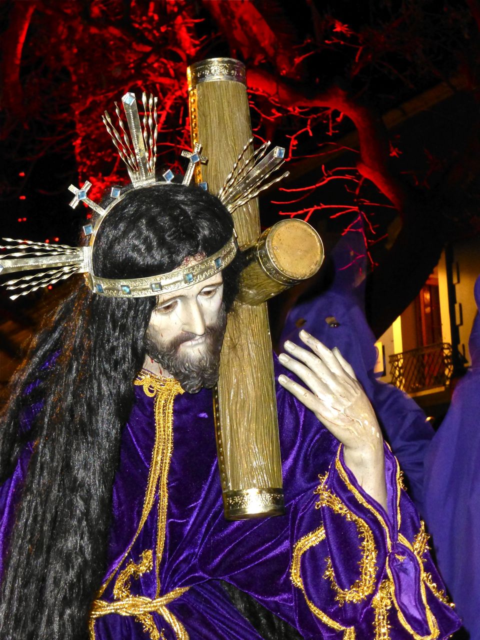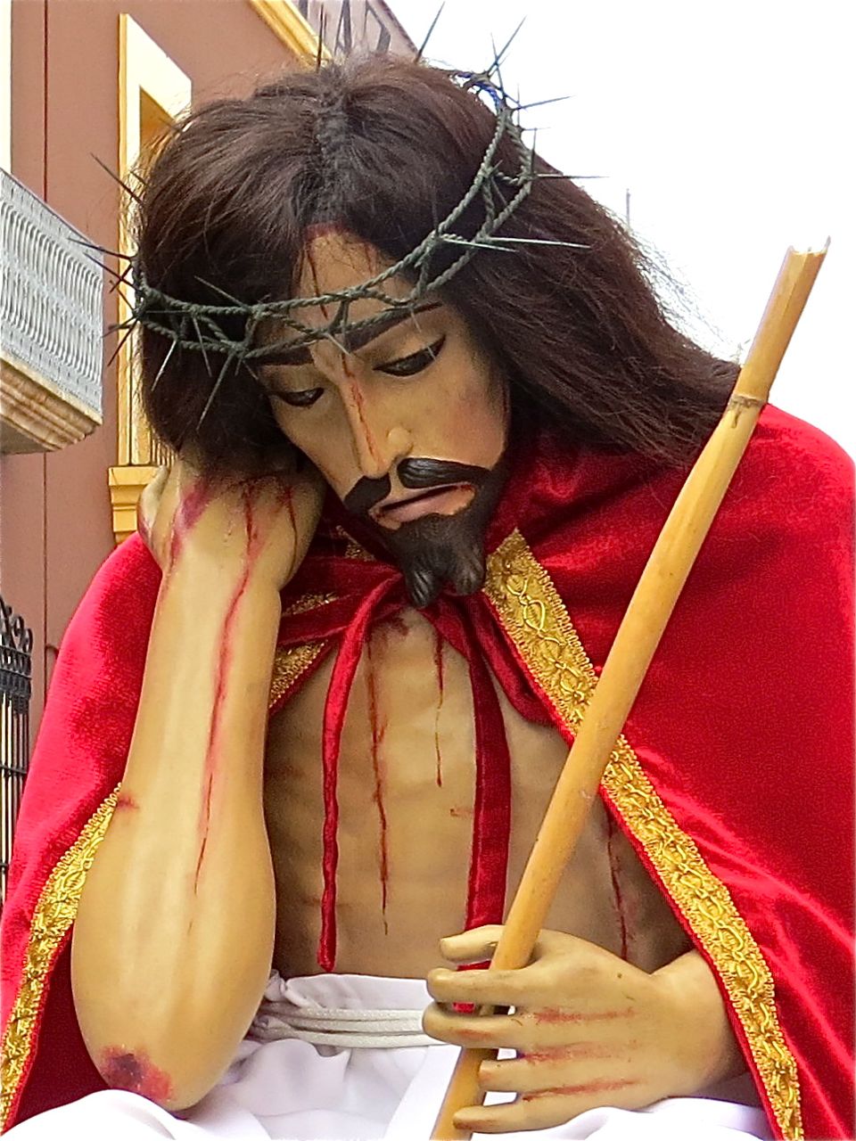 Good Friday wasn’t all about Mary.  Viernes Santo processions present larger-than-life images of Jesús in all his piety and suffering.