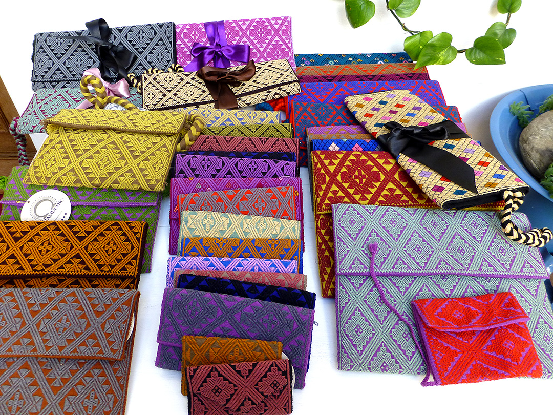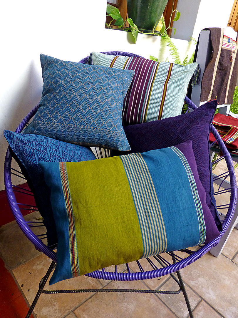 While the 150 weavers use traditional prehispanic backstrap looms, their designs and color palette are contemporary and sophisticated. Their work is of the highest quality — be they tablecloths, pillow shams, bags, rebozos (shawls) that can double as table runners, or coin purses.