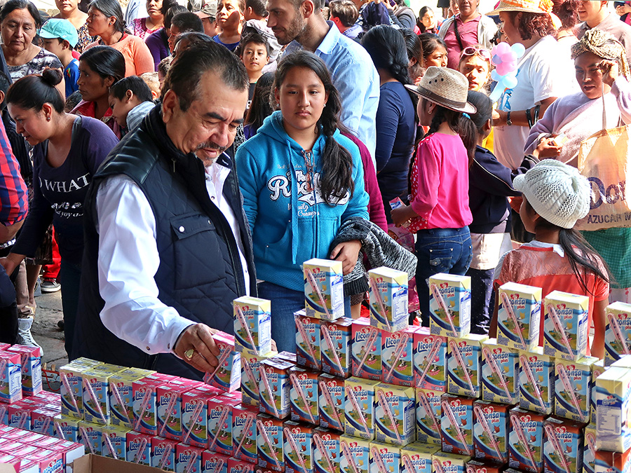 Today, the Alameda and zócalo were filled with activities and freebies for kids. At the booth below, each child received a toy and a carton of milk.