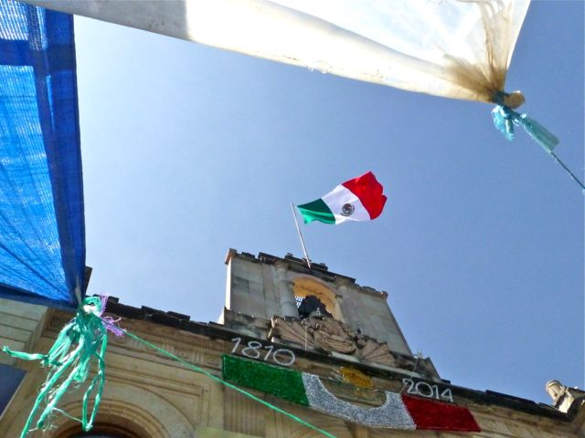 And, like every year, the Mexican flag was flying high, green, white, and red lights and banners were strung, and images of the heroes of the Mexican War of Independence from Spain decorated the front of the Palacio de Gobierno